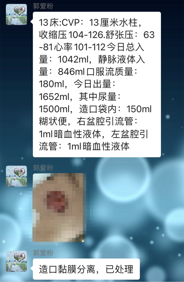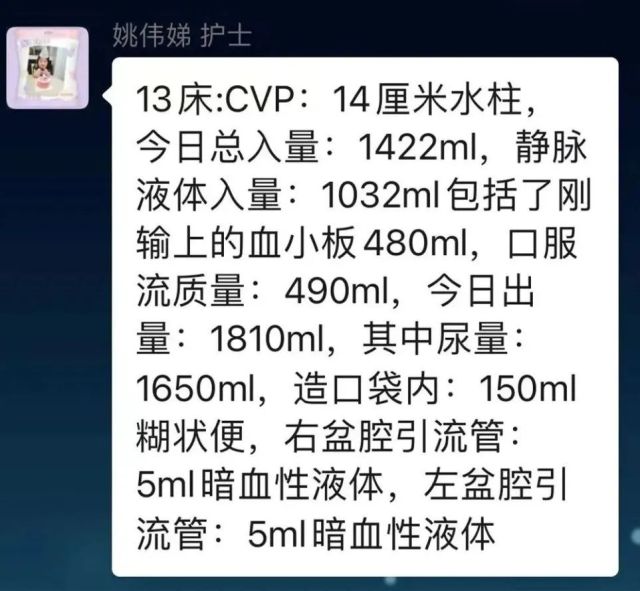 在顾奶奶专人的多学科会诊群里,护士每天汇报着详细记录的出入量及生命体征,心内科、感染科、呼吸内科、营养科等多学科专家每天与肛肠外科紧密配合,根据当天情况调整治疗方案,联合肠内营养以及先进的加速康复外科(ERAS)理念,迎难而上。