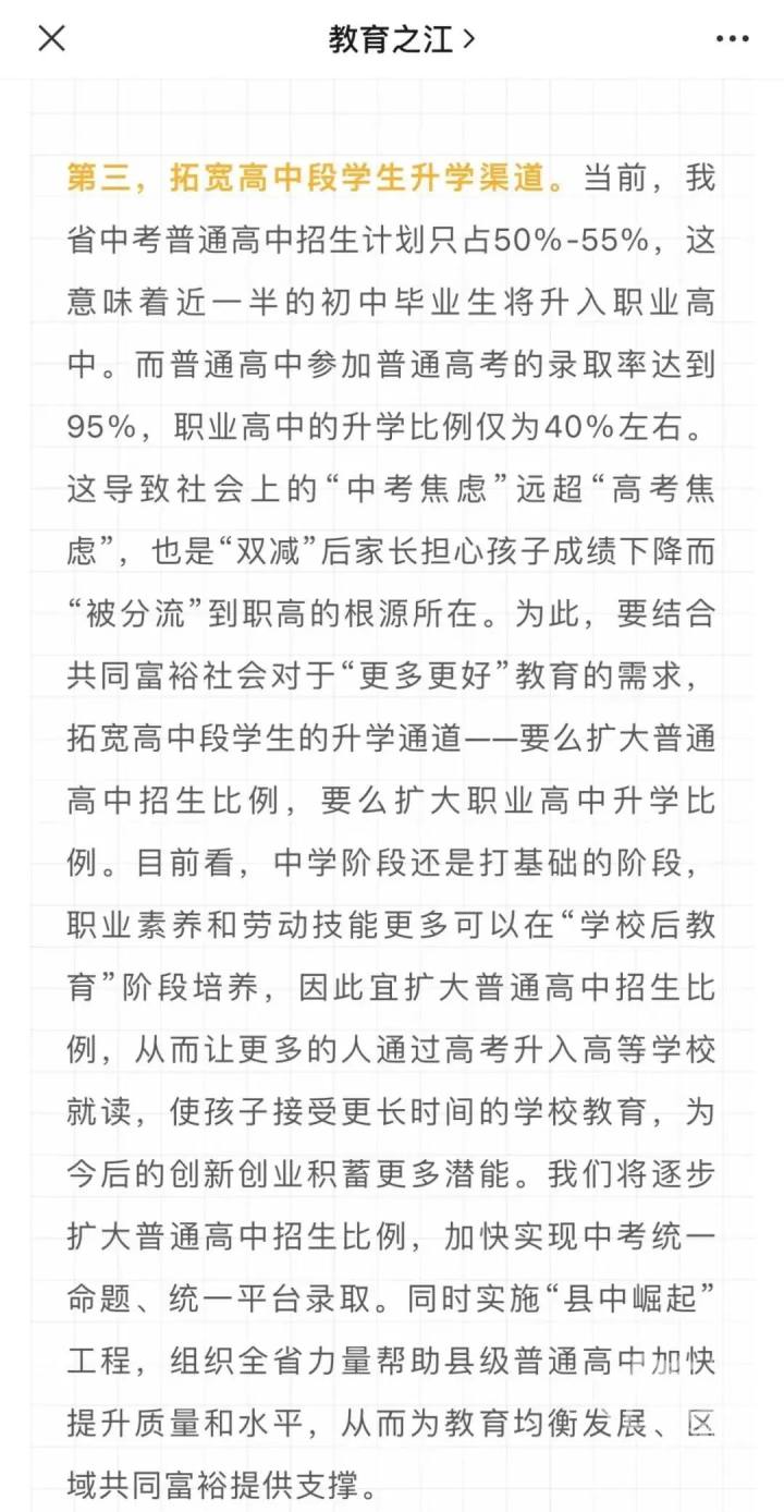 顶尖高中扩招,这个好消息已在很多家长群扩散。利好消息更多!因为接下来,浙江的普通高中招生比例还会继续扩大。