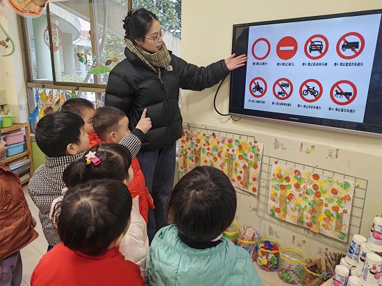 “健康成长,安全第一”,幼儿的每天出行,不管是步行还是坐车都离不开交通安全,新学期开学的第一天,戒坛园区把“文明交通,安全童行”作为幼儿新学期开学第一课。老师根据各年龄段幼儿的特点,用情景剧表演、警察叔叔互动讨论、游戏等方式开启了开学交通安全的第一课,引导幼儿掌握简单的自我保护方法,进一步提高孩子们的交通安全意识。