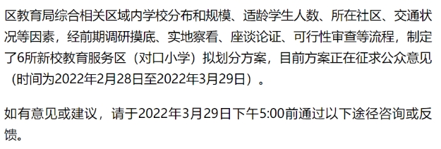 新开办学校的教育服务区和对口小学拟划分方案如下——