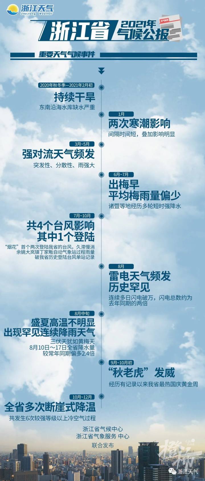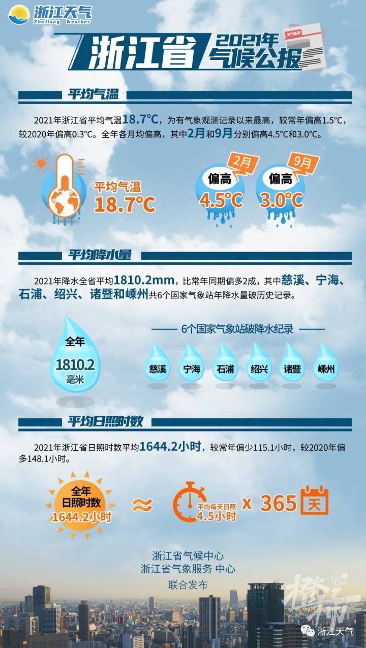 都市快报讯 今天,浙江省气候中心、浙江省气候服务中心联合发布的《2021年浙江省气候公报》出炉。