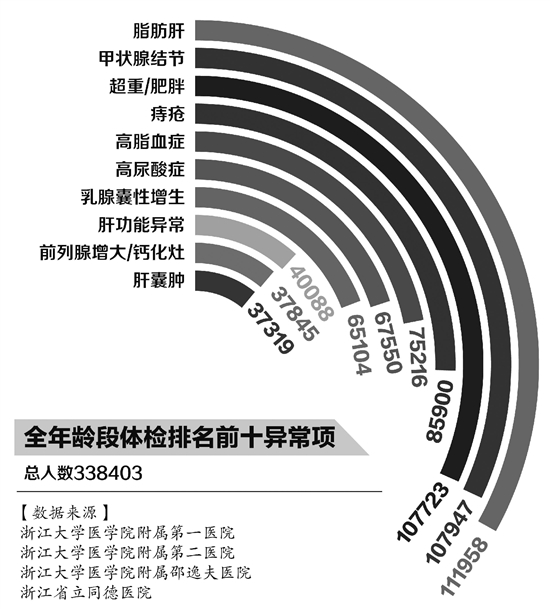 每年,杭州各大医院都会对前一年的体检数据进行汇总,梳理分析检出率最高的前十大异常指标。