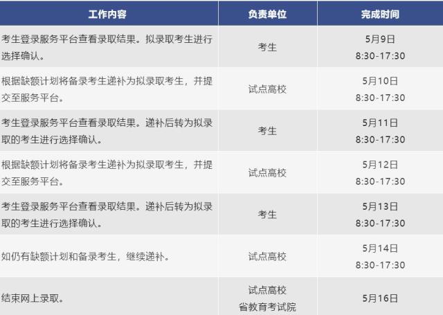 高校如有缺额计划,再按上述流程,根据备录顺序递补。备录考生根据录取进程、待转为拟录取后再登录服务平台选定录取高校。