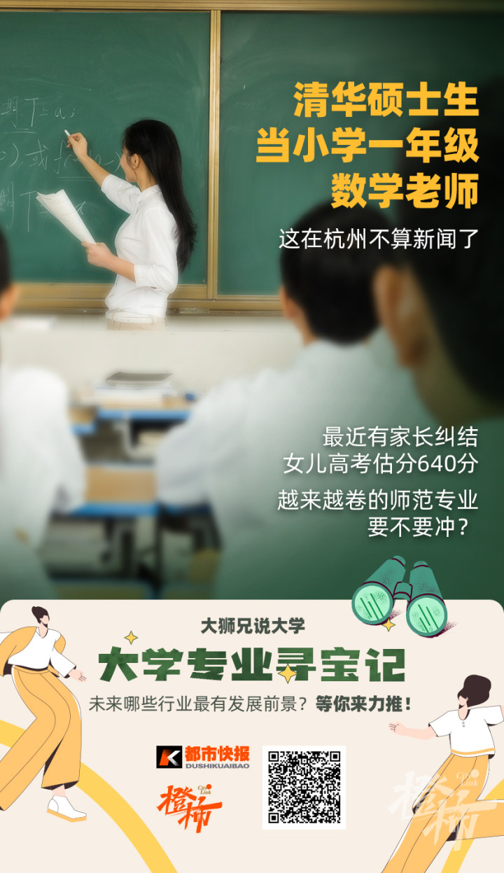 前两天,一位清华大学硕士研究生入职成为杭州一所小学的数学老师,引起很多人关注。