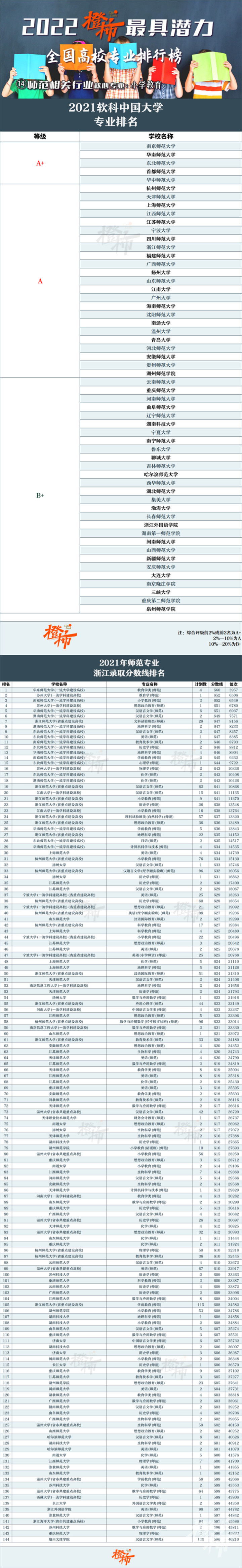 此外,省内招收师范类院校的数量也有不少,除了浙师大与杭师大,还有宁波大学、浙江海洋大学、绍兴文理学院、湖州师范学院、温州大学、台州学院、丽水学院、衢州学院都招师范类学生。