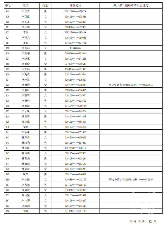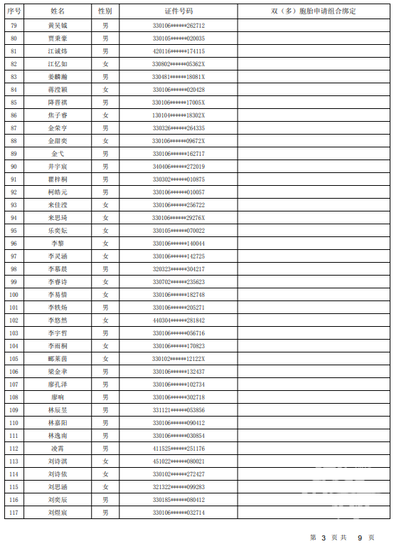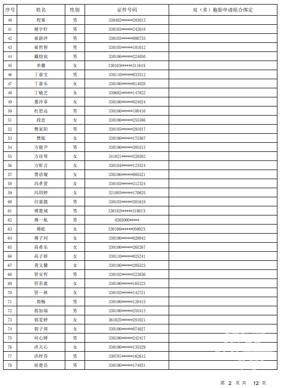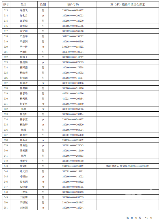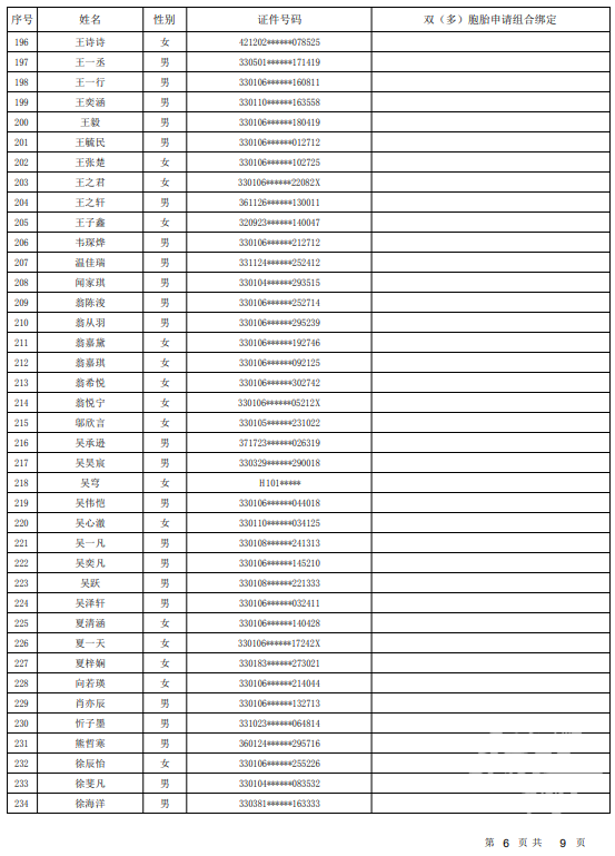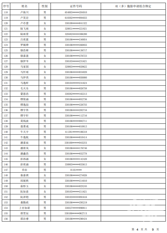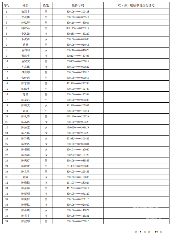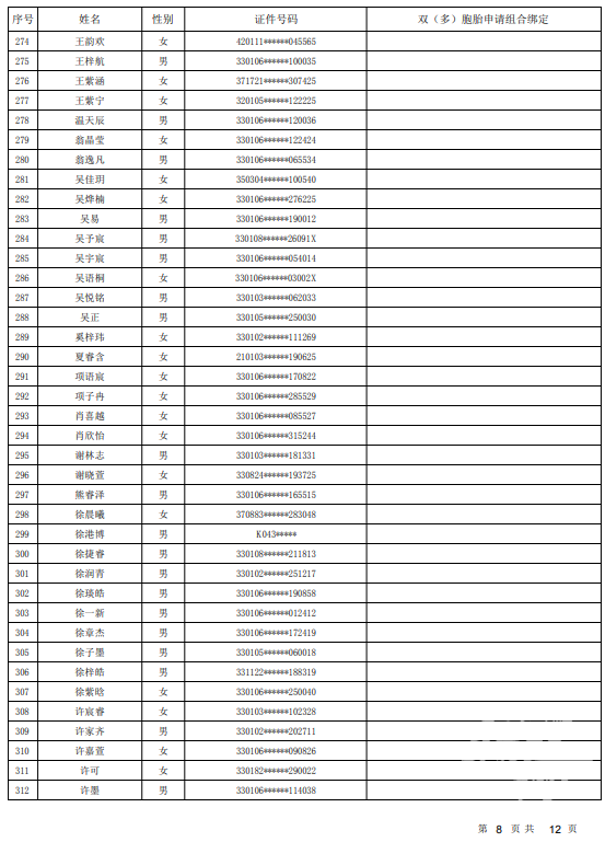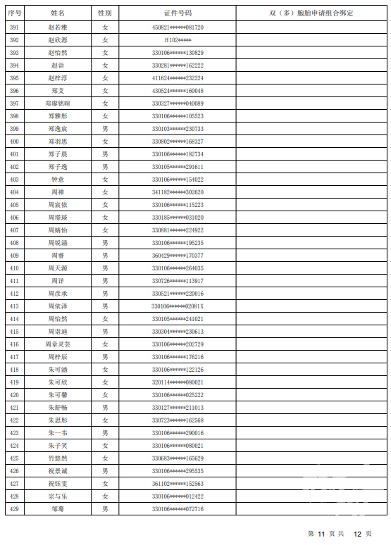 杭州市采荷实验学校初中部(民转公学校)录取名单——