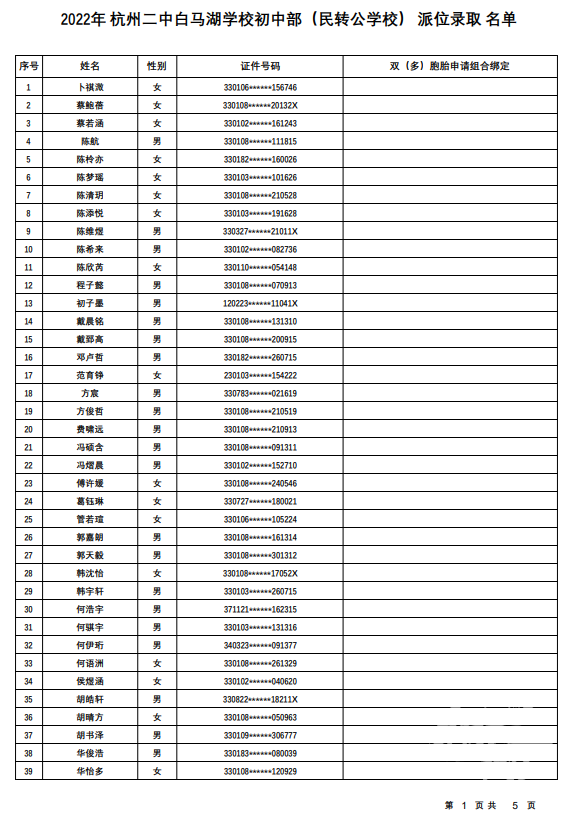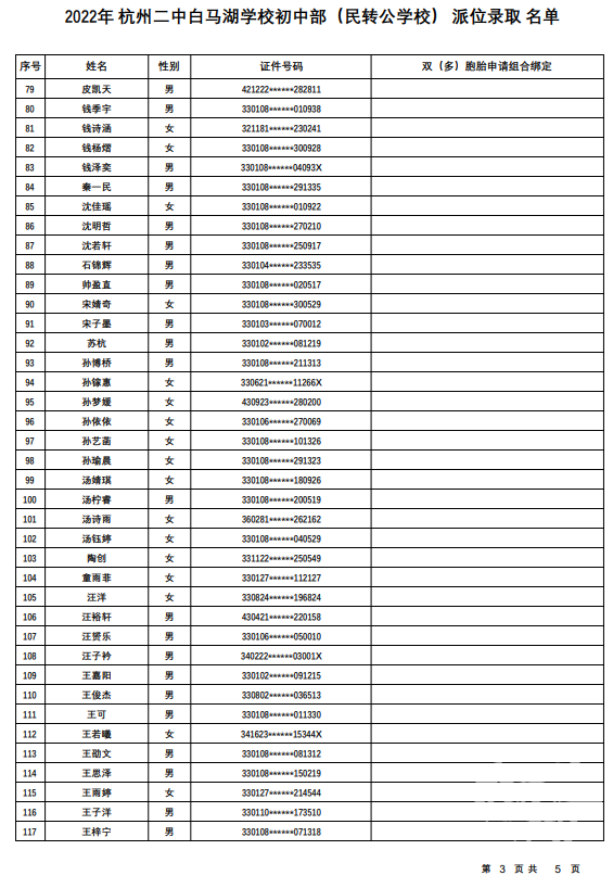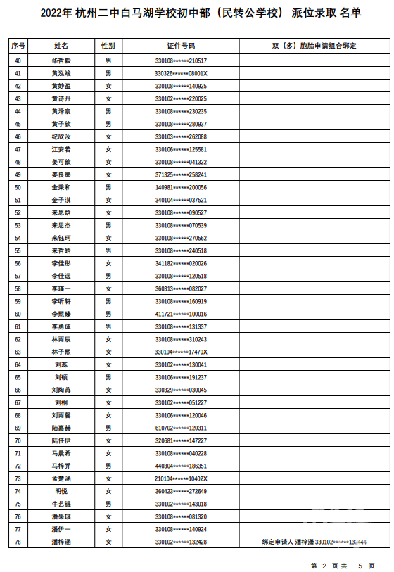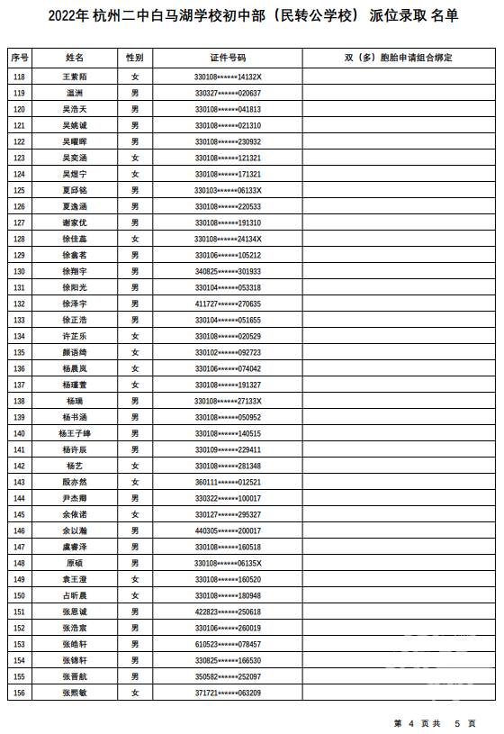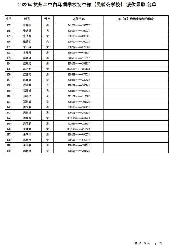杭州二中白马湖学校初中部(民转公学校):计划招生180人,报名人数771人,派位比1:4.28。
