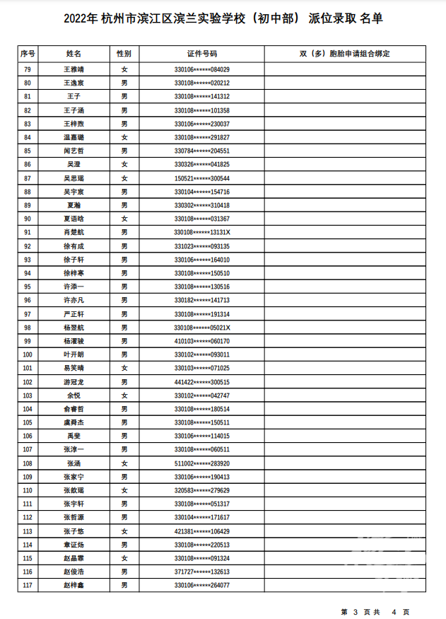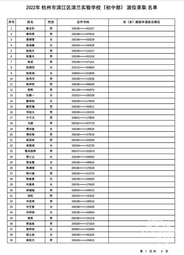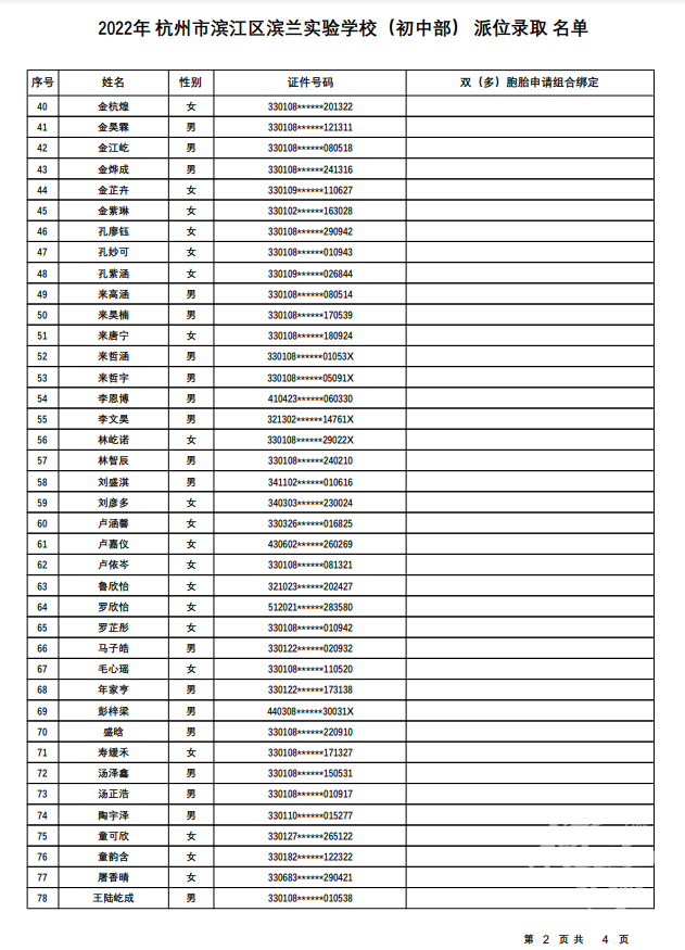 杭州市滨江区滨兰实验学校(初中部):计划招生121人,报名人数225人,派位比1:1.86。