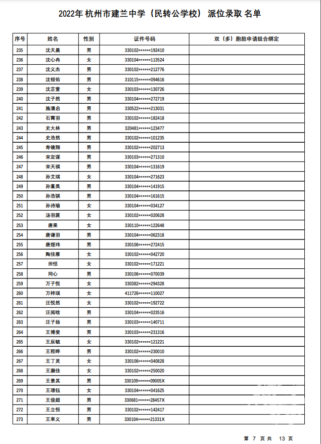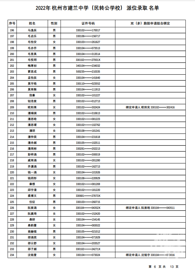 持续更新|拱墅区、上城区、西湖区、滨江区、钱塘区名单发布!杭州民办初中(含民转公学校)电脑派位结束