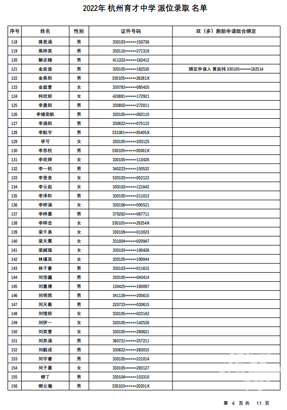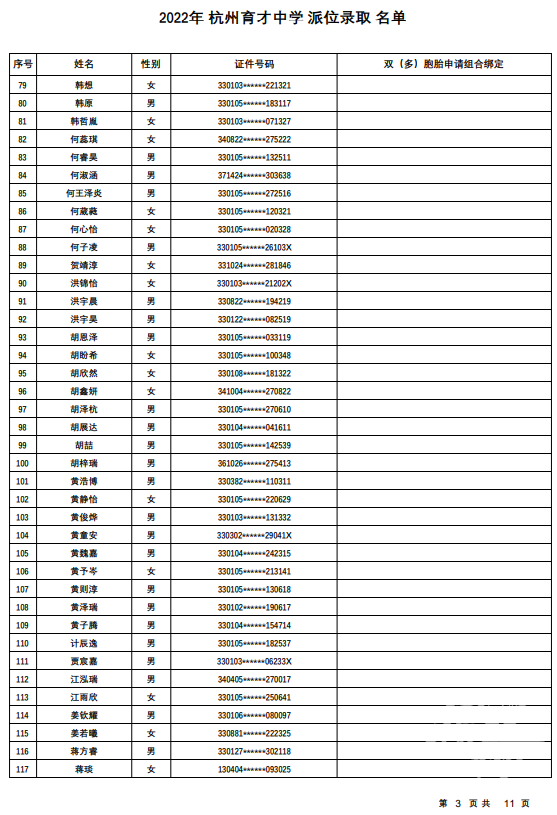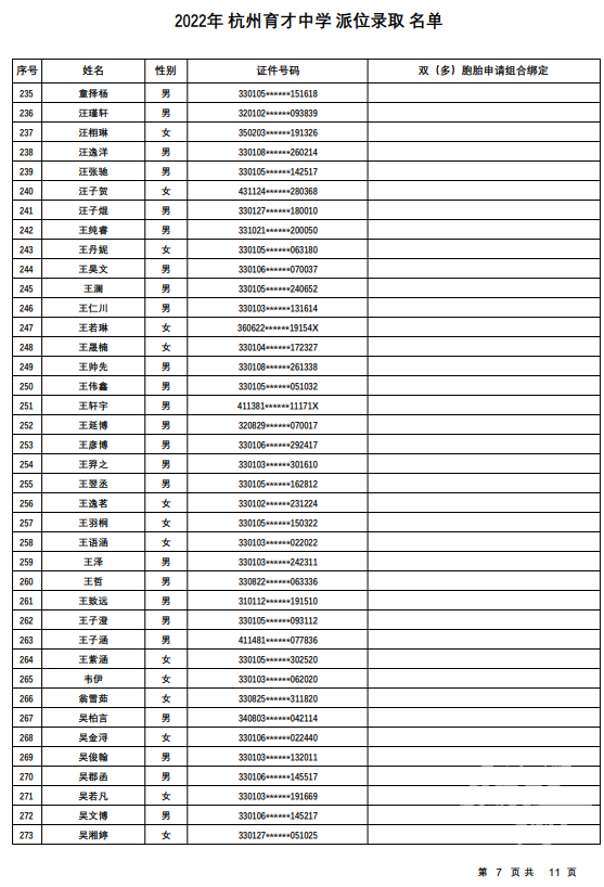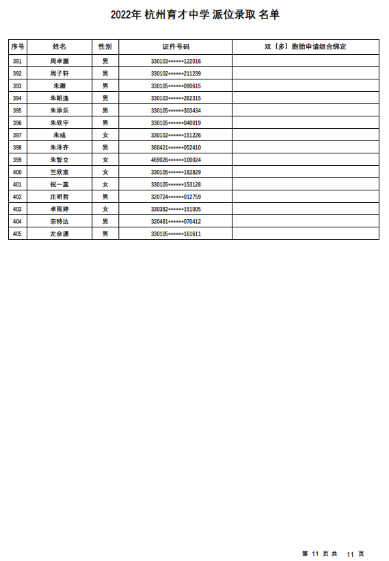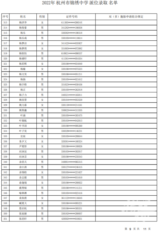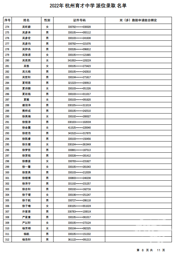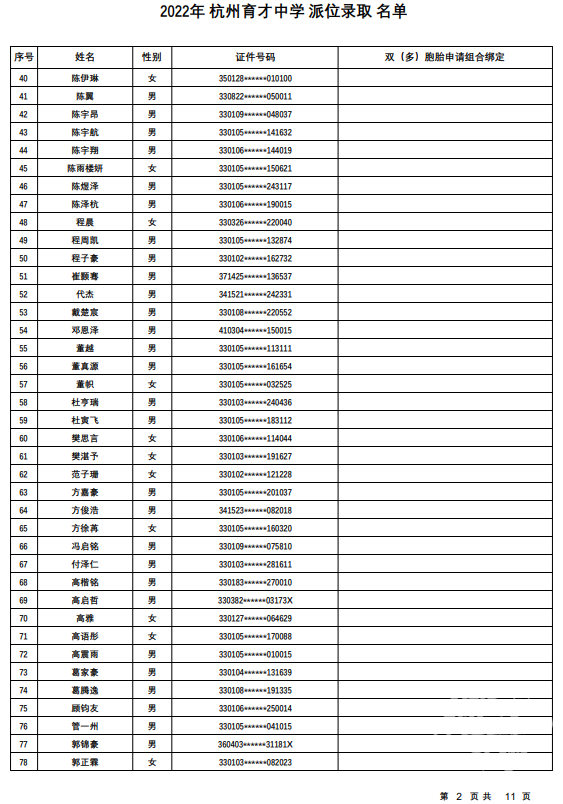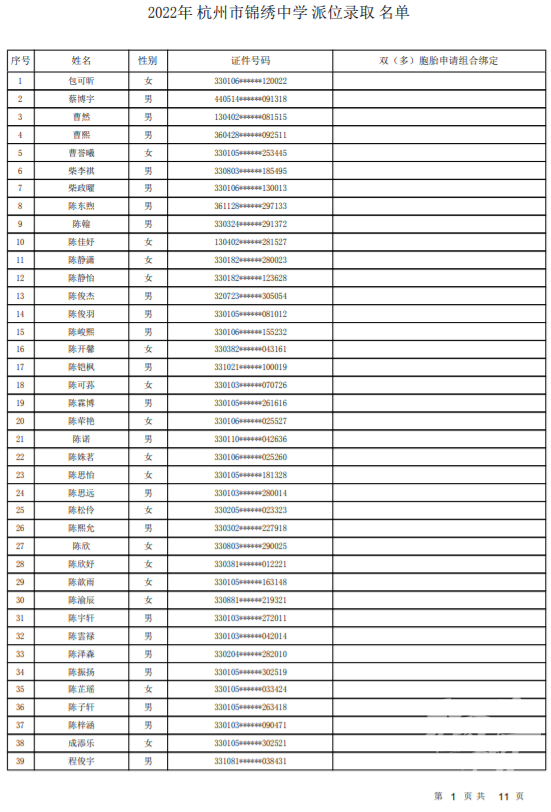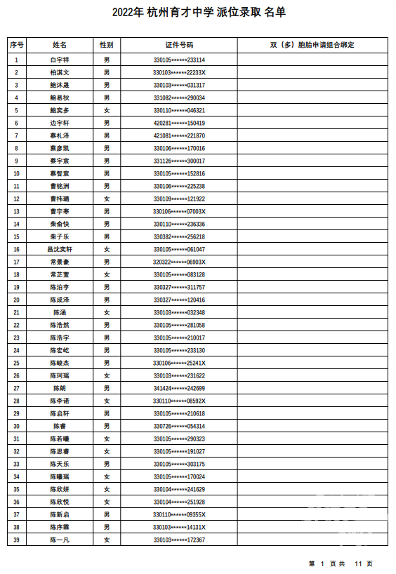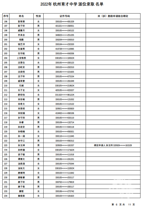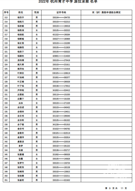 杭州育才中学录取名单发布——