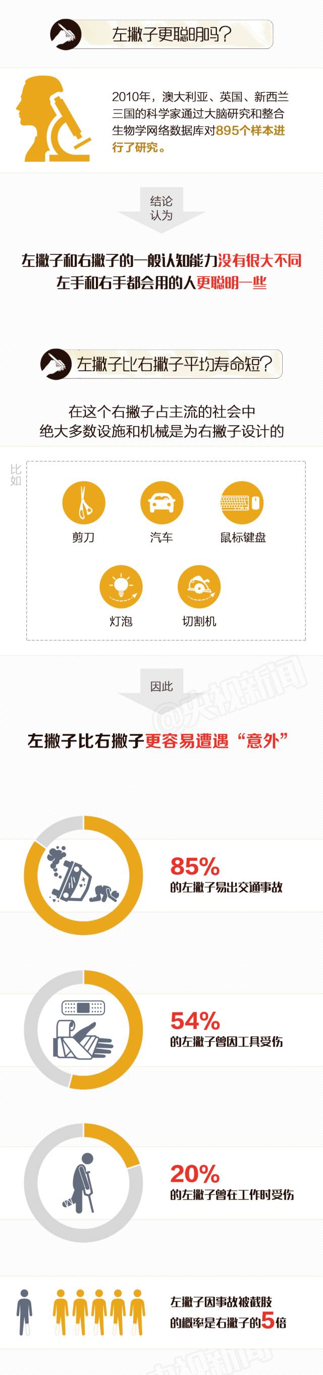 2010年,英国、澳大利亚、新西兰的科学家通过对近千个样本进行分析,发现左撇子和右撇子在认知能力上并无明显差异,反倒是左右手都会用的人更聪明一些。