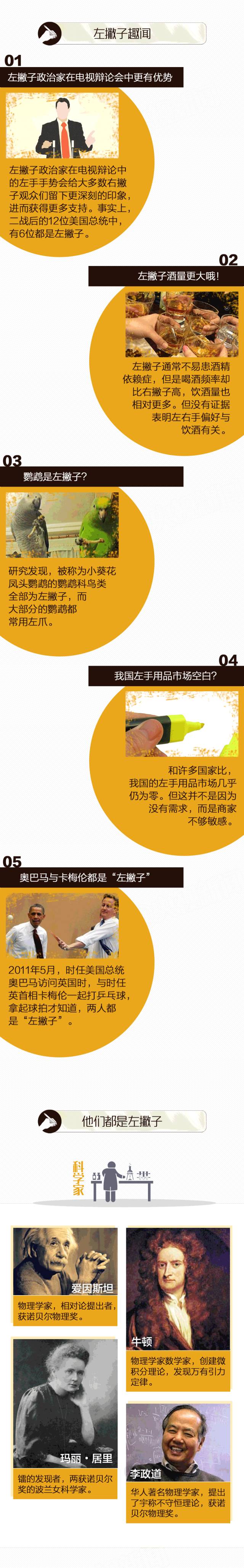 尽管理论如此,从政治家到运动员,从企业家到科学家,从文学家到艺术家……世界左撇子名人数不胜数。近代美国总统里,就有5位是左撇子。