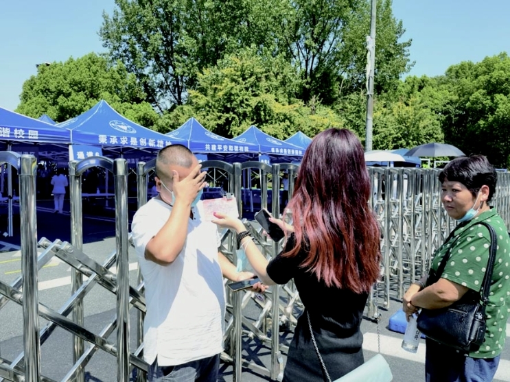 与往年一样,因为疫情防控的原因,今年送行的家长依然不能进浙大。家长止步于校门口,依依不舍地目送孩子进学校。