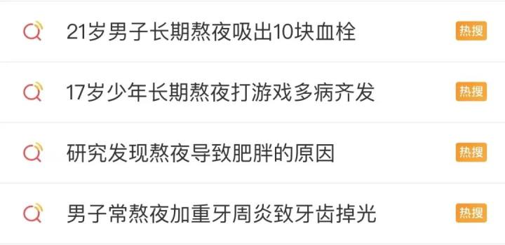 2021年,有媒体通过对1857位受访者调研,发布《2021当代年轻人熬夜报告》,报告显示,超四成年轻人表示几乎每天都熬夜。在“最爱熬夜行业”排行榜中,第一名是自由职业者,互联网、金融行业排二三名。