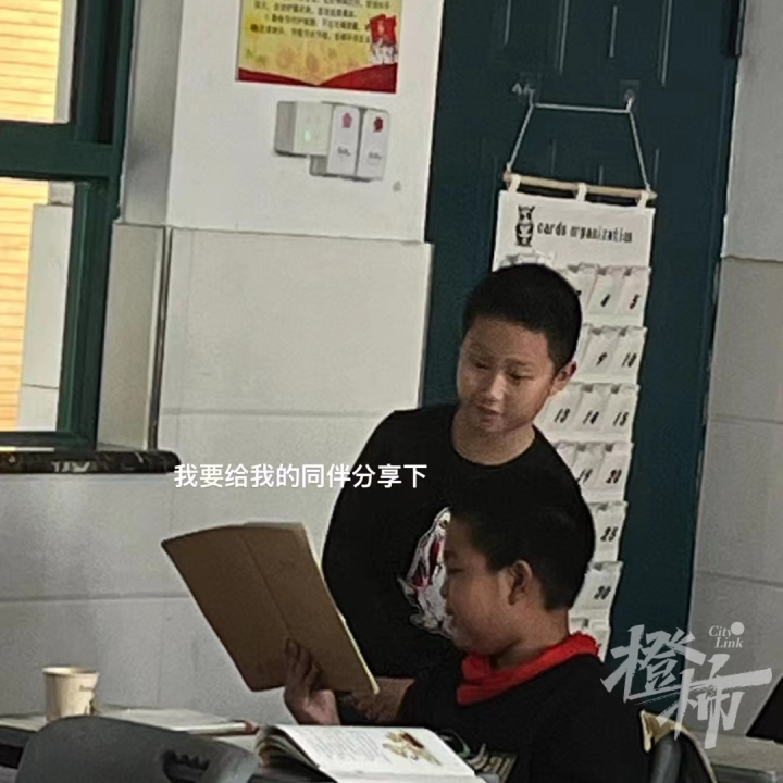 在沈老师的镜头中,小徐同学先是认真读了评语,接着抿嘴一笑,抬头回味了一下,又喊来了好朋友,把自己的作文分享给身边的同学。