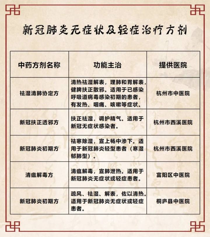 下面将杭州市目前已有的预防和轻症可选中药方剂分享给大家,赶紧收藏吧!
