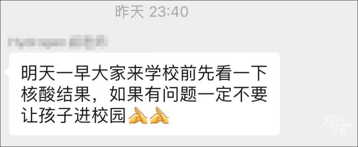 将近12点,班主任第三次在群里提醒:“明天一早大家来学校前先看一下核酸结果,如果有问题一定不要让孩子进校园。”