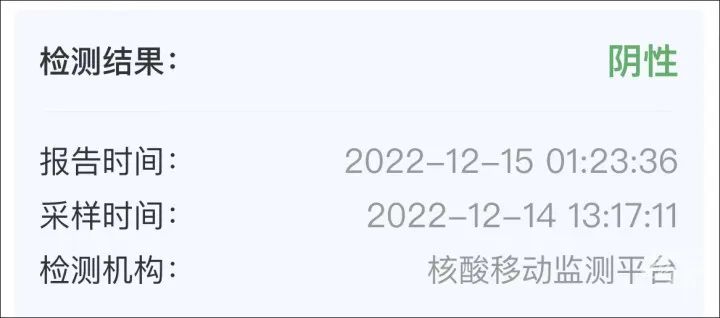 晚上将近10点,沈女士刷了无数遍健康码后,终于等来了核酸阴性报告,期间还一度看错报告……