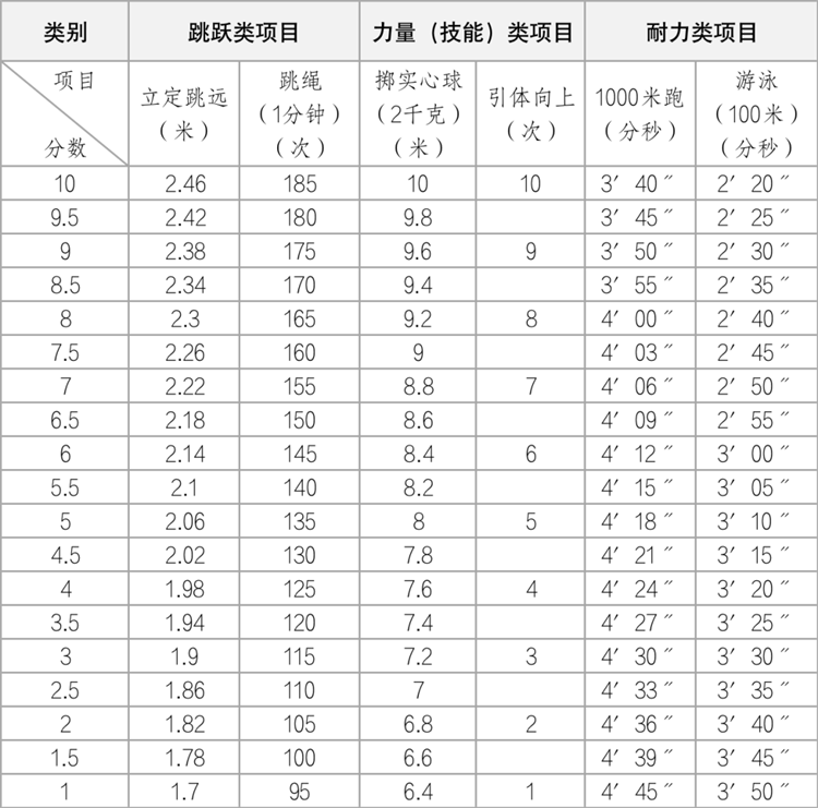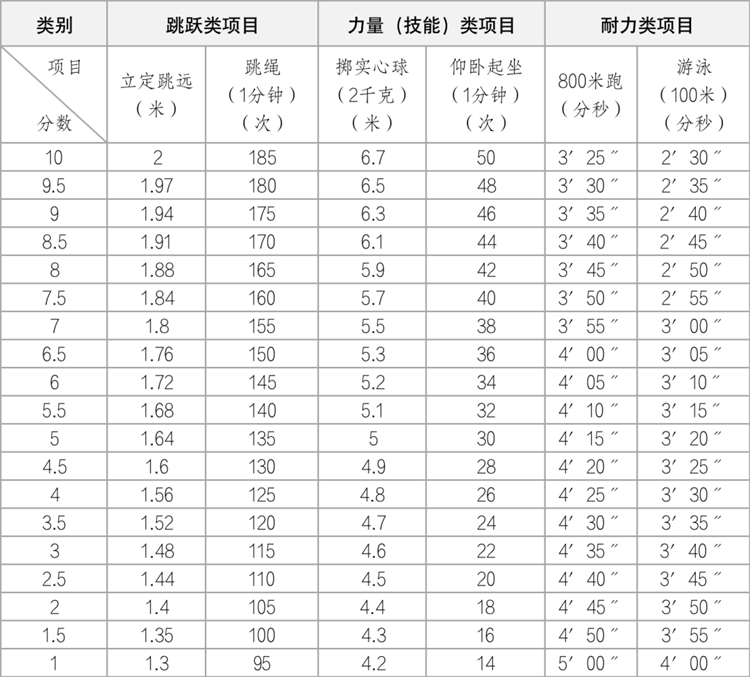 中考体育考试总分仍为30分。其中,考生选考的两项每项满分10分,以考生最好成绩计分;因减项另为每位考生赋分10分。