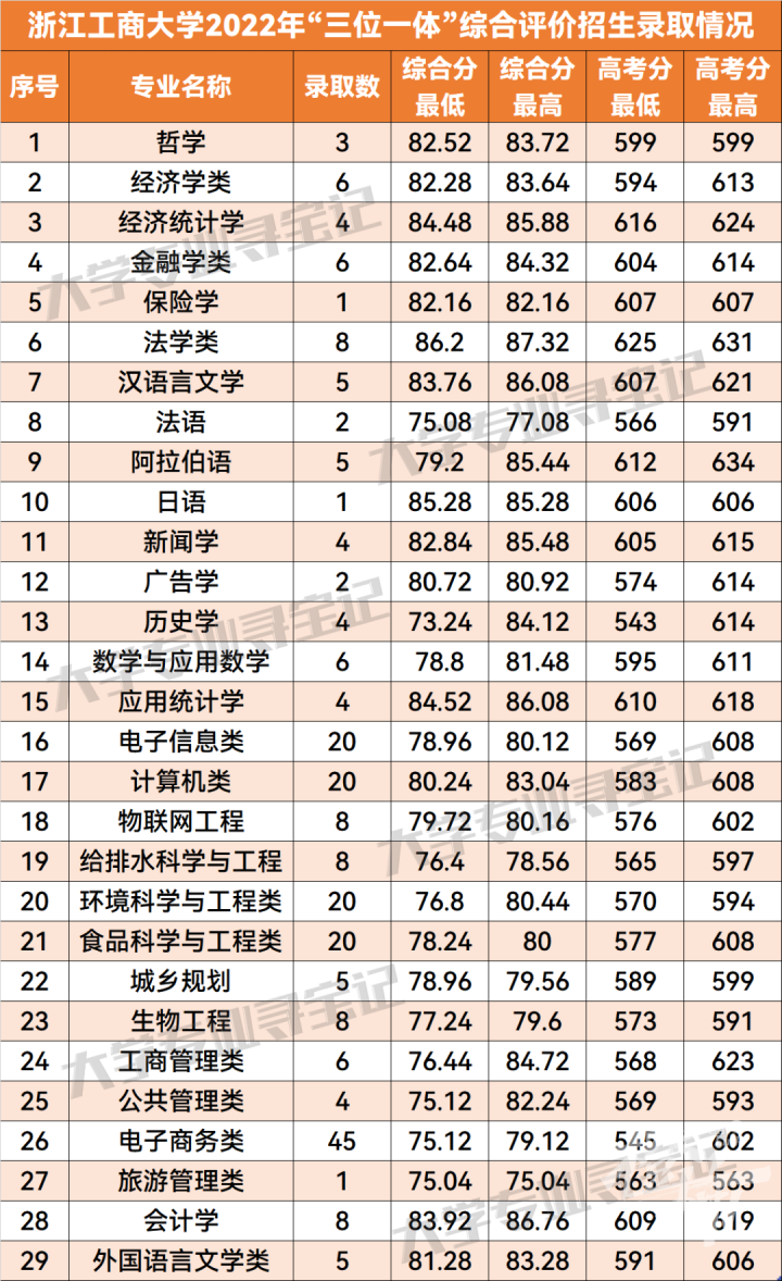 橙柿互动整理了2022年浙江工商大学三位一体招生的投档录取分数,一起来看。
