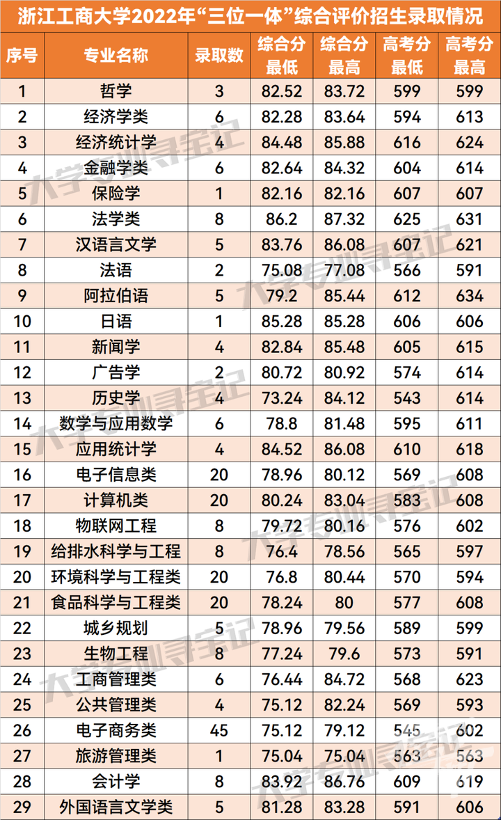 橙柿互动整理了2022年浙江工商大学三位一体招生的投档录取分数,一起来看。