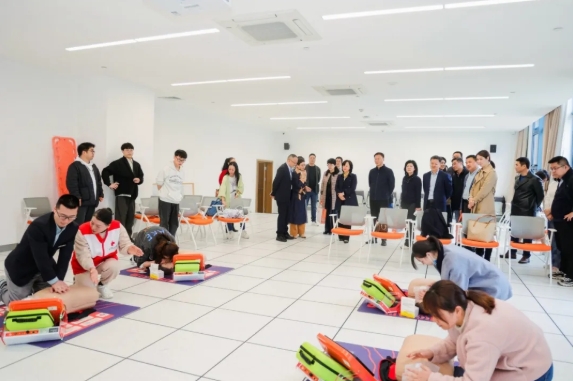 授牌仪式后,梁强勇陪同市民政局党组书记、局长李一青,党组成员、副局长郑颖等调研红十字应急救护实训基地