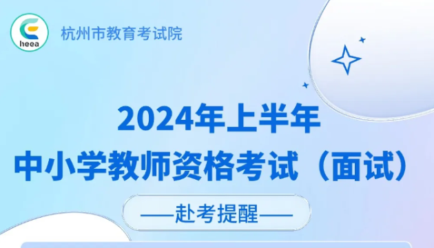 2024年上半年中小学教师资格考试(面试)杭州考区赴考提醒