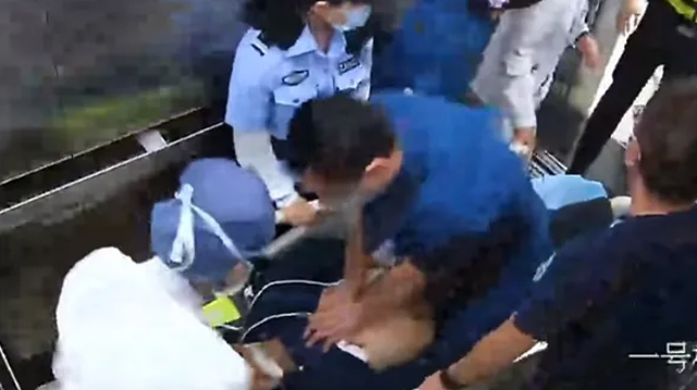 7月2日上午十点多,来杭务工的53岁男子在杭州市第一人民医院扶手电梯口突然晕倒。刚好经过的门诊部护士长单银娣发现患者心脏骤停,立即为其进行胸外按压,同时第一时间启动了999,一场生死急救开始。
