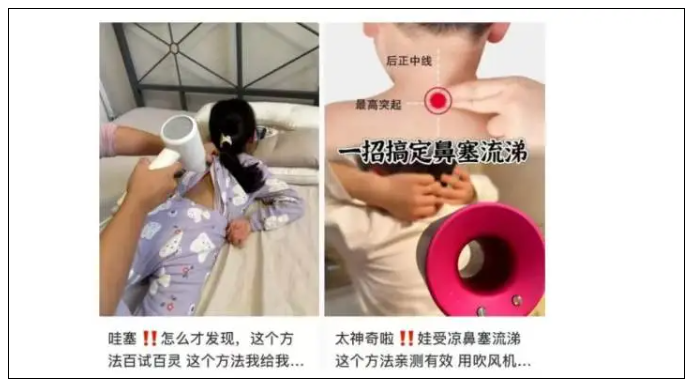 有网友表示“艾灸平替,用温热帮助散寒”“不花钱,让气血沸腾起来”;有网友拿吹风机给咳嗽的孩子吹后背,结果次日孩子咳嗽加重,还上了火,呼吁千万不要乱试;也有网友表示担忧,认为不管凉风还是热风,中医认为进入身体的都是邪风。