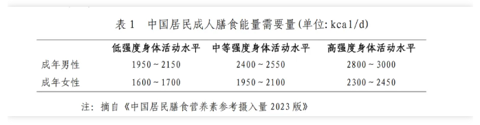 控制总能量摄入和保持合理膳食是体重管理的关键。控制总能量摄入,可基于不同人群每天的能量需要量(如下表),推荐每日能量摄入平均降低30%~50%或降低500~1000kcal,或推荐每日能量摄入男性1200~1500kcal、女性1000~1200kcal的限能量平衡膳食。