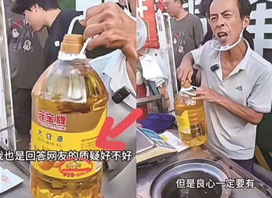 近日,网友为江西景德镇“鸡排哥”的“用油问题”争论上了。有网友表示鸡排哥是良心商家,用的是好的油,也有网友称“他也许不懂,大豆油不适合用来高温反复油炸”。