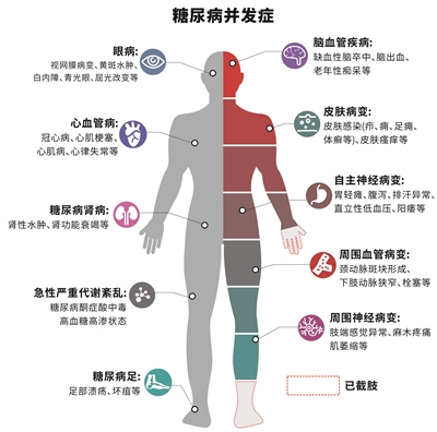 李霖接诊了太多像陈建国这样的患者。“糖尿病有100多种并发症,会造成患者的神经和血管发生病变,导致视网膜病变,下肢动脉病变,心脑血管并发症,肾病以及糖尿病足。”李霖说,糖尿病足是糖尿病患者发病率最高,同时也是致死、致残率最高的并发症之一。