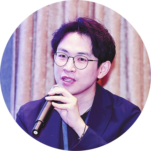 一身黑色休闲西装,穿搭考究,微卷的头发看起来像精心打理过。讲话时,修长的双手随着语调自然起伏,极具感染力,让人不知不觉跟随他走进细胞的微缩世界。
