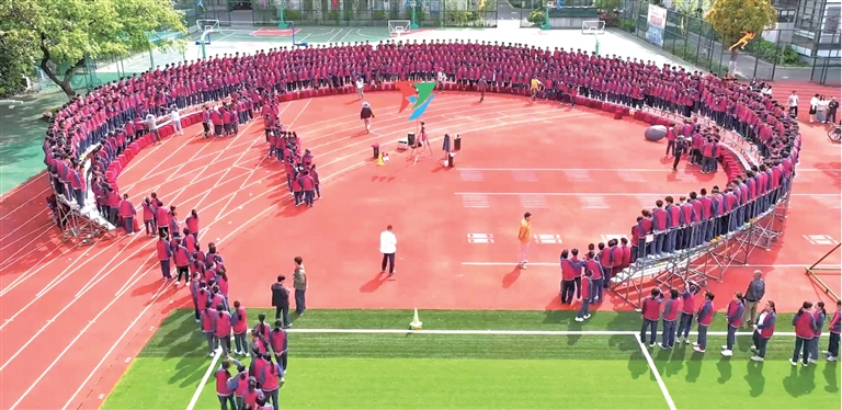 前天,杭州市十三中教育集团24个班级1100多名初三学生拍毕业照,现场再现最壮观的毕业照。