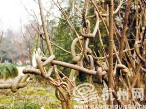 读者长江传来图片:我在长桥公园看见一棵结香树,枝条上打了不少结。因为这种树的枝条纤维组织特别发达和柔软,可以打结而不断,且花具浓香,故名结香。它的树皮可取纤维,供造纸;枝条可供编篮、筐等。据说,在有些地区,女子习惯在结香树上用枝条打结许愿,以追寻梦中情人。它被誉为中国的爱情树,恋爱中的人们想要长久,就会跑到结香的枝前打两个同向的结,寓意爱情甜蜜、幸福。