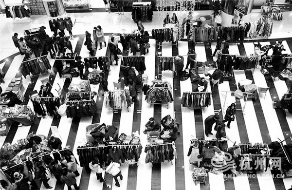读者连国庆:2月4日,在某服装城一楼大厅里,许多摊位开始清仓,服装从20元到100元不等降价处理,摊主们开始准备回家过年。