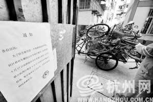 昨天上午9点,胭脂社区工作人员来到7幢、10幢楼下,对社区的6个自行车库进行清理。