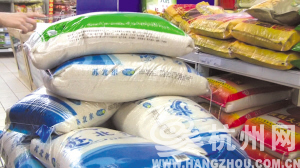 记者魏奋核实报道:延安路家乐福超市内,大米有几十个种类,袋装散称的都有。大多数袋装大米,每袋10到15公斤。只有一款宁波产的袋装“苏北米”,外包装写着净含量25公斤,散卖的价格为每斤1.8元。