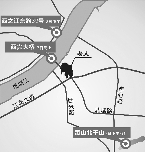 从7日下午到前天中午,迷路的吴奶奶冒雨一直从萧山北干山经西兴大桥走到杭州的之江路。这20多公里路,老人是怎么走过来的,有没有吃过饭,遇到了什么人?记忆力不好的吴奶奶已经说不清楚。