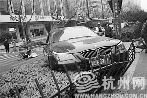 记者核实:事情发生在6点多,体育场路肯德基武林店门口的斑马线前,一辆宝马冲进了绿化带,被撞的电动车车主姓徐,是万寿亭菜市场的一位摊主。徐师傅说,早上6点钟,他从杭州大厦送菜回来,准备回万寿亭菜市场。因为这里早上人比较少,所以车子的速度都比较快,所以他过斑马线时也很小心,没想到这辆宝马速度太快,一下就撞到了他的电动车,然后冲进了绿化带。司机是一名男子,从驾驶室出来后,脸色红红的,还有一股酒气。不过幸运的是,徐师傅并没有受伤。目前,事故下城交警大队正在进一步处理中。