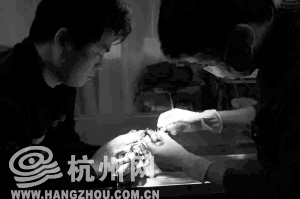 张旭叫我们把鸟抱到手术室,无影灯下,有人开始给他递手套、口罩、钳子、镊子、刀……
