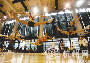 4月8日至11日,中国美院里有一场关于“美”的比赛——2010年杭州市第六届中学生健美操比赛。参加的有550多名学生,分竞技单人操、双人操、三人操、大众规定操、徒手自编操和轻器械自编操6个项目比赛。