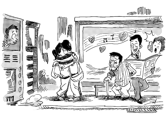 经常在这里等车的人都见过这对学生恋人。初三女学生小张有点害羞地说:“爱情很美好,恋爱也正常,我们隔壁班有七八对这样的恋人,老师也都知道。其中一对学习都很好,成绩在班上都能排进前十名。”