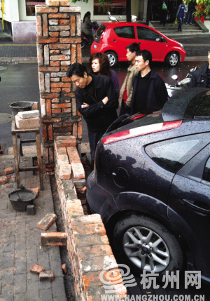 “车子左右和前头都停满了车,开不出去,我们9点钟要赶到湖州长兴去开会的呀!我跟工人商量,能不能把车屁股后面的砖头先拆掉,让我们好开出去。工人说不行,让我找旁边那些车的车主,让他们给我让路。我到哪里去找其他车主啊?没办法,只好先到周围洗车房里去找了一圈,又到保安那里去问了一圈。弄了半天,一个车主也没找到。