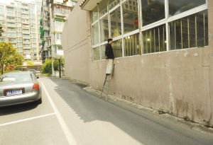 第八届杭州残疾人运动会双休日在陈经纶体校培训中心举行。星期天下午结束,我赶去看了个尾巴。出来的时候,在游泳馆窗外,看到有位观众夹了个梯子,在看残疾人的游泳接力赛。