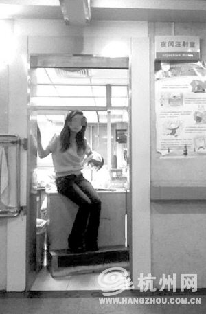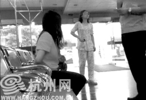民警让红衣女子回避一下,她们退到了急诊室门口。