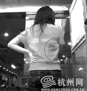 红衣女子背部血迹清晰可见