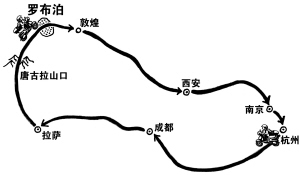 5月10日,易木放下工作,从杭州出发,经成都,到拉萨,过唐古拉山口,然后计划穿越“死亡之海”罗布泊,再经敦煌,西安,南京,再回到杭州,整个行程地图距离达1.2万公里,实际行程可能会超过1.5万公里。