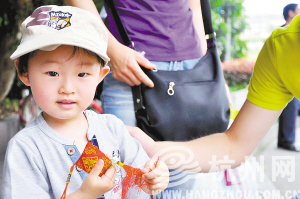 昨天是端午节,早上9点半开始,在吴山广场、黄龙公交中心站、武林小广场、火车东站公交站台上,公交电车分公司携手万承志堂,分派300多名志愿者分发香袋。只要能为老人、怀抱婴儿的乘客、准妈咪让座,或积极参与无饮食车厢活动的乘客都可以得到香袋。