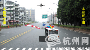 见习记者陈锴凯核实报道:登云路是一条六车道的机动车道,两边都有绿化隔离带,隔离带的左右两侧才是非机动车道。从余杭塘桥下来的地方,有几个隔离带的入口。因为非机动车道窄,很多非机动车从入口处行驶到机动车道上。